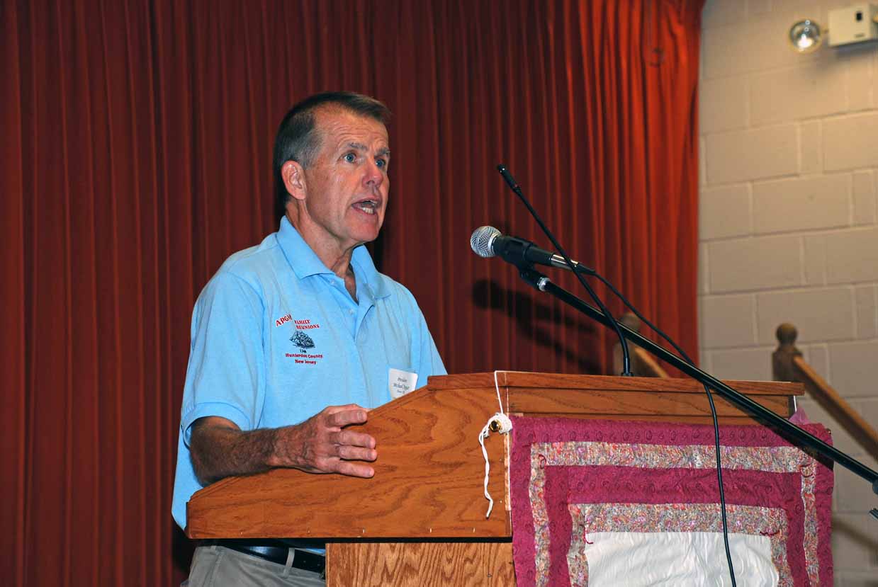 September 18, 2010Stanton Grange, Lebanon, NJPhotographer: Jim Pickell Group Photo Group Photo Mary Carpenter (Technology Coordinator) Judy Beck ( Historian) Megan Kransky with Jeanette Lesinski (Recording Secretary) Mary Pratt, Wanda Apgar and Judy Dickman Roger Flartey (former trustee) Bill Roberts, signing in Bill Roberts, signing in Matt Kransky (treasurer for the day) Tom Lesinski and Jeff Dalrymple Lesley Apgar tends the Apgar Store Debbie (Membership) and Mary Apgar Mike Apgar (President) with Henry Apgar, Jr. (Newsletter Editor) Mike Apgar (President) with Henry Apgar (Newsletter Editor) Mike Apgar (President) with Henry Apgar (Newsletter Editor) Lynn Conley (Genealogist) with Roger Flartey (former Trustee) Jack Shuster with George Apgar (Vice President) Lesley Apgar, Leia Apgar, Kristie Apgar and George Apgar (Vice President) Mike Apgar (President) Mike Apgar (President) Mike Apgar (President) Mike Apgar (President) Guest Speaker: Reverend Stephen Yoo, High Bridge Reformed Church Guest Speaker: Reverend Stephen Yoo, High Bridge Reformed Church Guest Speaker: Reverend Stephen Yoo, High Bridge Reformed Church Kim Apgar Costa Mike Apgar (President) with Guest Speaker, Reverend Stephen Yoo Lynn Conley (Genealogist) Lynn Conley (Genealogist) Jeff Dalrymple and Mary Carpenter Mary Carpenter (Technology Coordinator) and Tom Carpenter Roger Flartey and Judy Beck Mary, George and Debbie Apgar Bill Roberts and Dottie Pickell Tom and Jeanette Lesinski Albert and ... Teats Fred ... Kransky family: Megan, Lynn and Matt Dolorita and Harry Wright Evona ... and Lois ... Lois P Lee Anderson and Wayne Apgar Carol Apgar and Lesley Apgar Kristie Apgar, James Apgar and Leia Apgar Mike Apgar and Kim Apgar Costa Moria, Gavin and Ozzie Apgar Chris and Mary Apgar Ken and Leslie Apgar Glen and Judy Dickman John Apgar Charles and Mary Pratt with Wanda Apgar Effe ... John and Wanda Apgar Joyce and Stanley Garrison Peggy Sargent Cake for 300th Anniversary of Palentines to America Arthur Koenig and Jack Shuster Arthur and Hean Apgar Koenig Largest Family Group: The Howard Apgar Family Mike and Ken Apgar Oldest Female: Joyce Apgar Garrison, with Mike and Lynn Oldest Male: Bill Roberts, with Lynn and Mike Youngest member: Bridget Apgar, with Lynn and Mike Longest Married: Harry and Dolorita Wright, with Lynn and Mike Travelled Farthest: Henry Apgar with Mike and Lynn Raffle Winner: Carol Apgar with Lynn and Mike. Ticket drawn by Bridget Apgar. Trustees: Lois, Henry, Mary, Lynn, George, Jeanette, Debbie, Mike