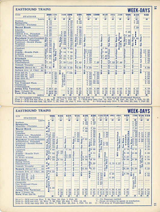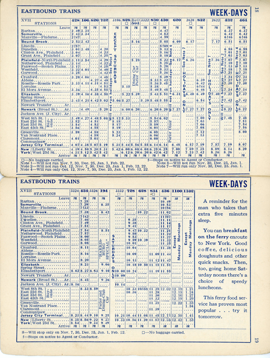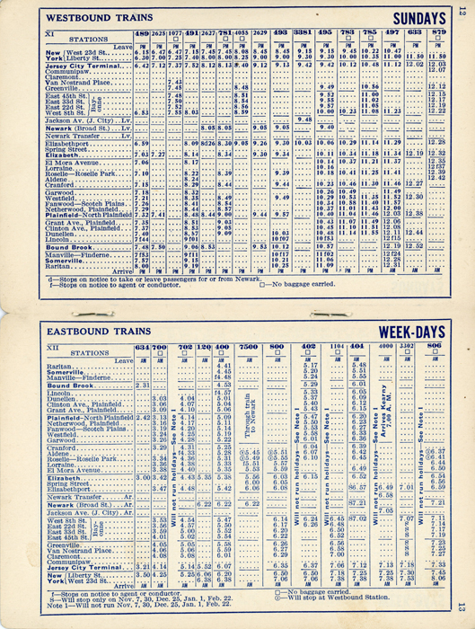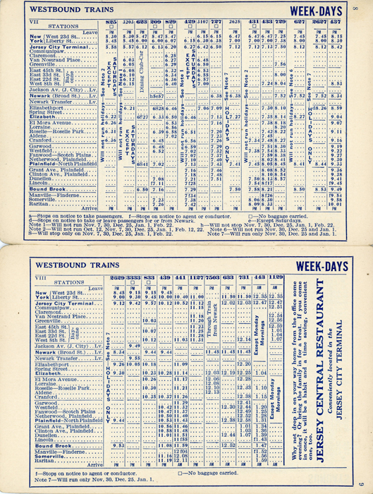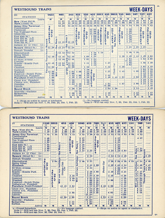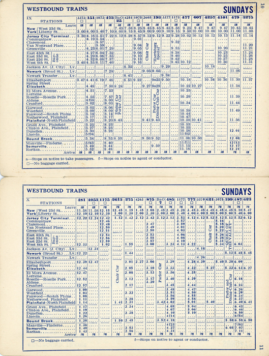 Sept 1933 New Jersey Central Railroad Schedule train schedule for what is now know as New Jersey Transit's Raritan Valley Line.