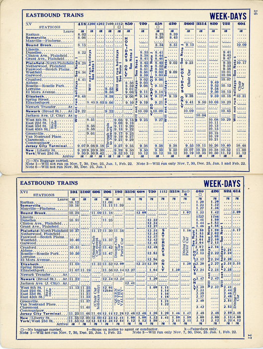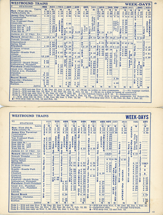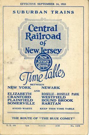 Sept 1933 New Jersey Central Railroad Schedule train schedule for what is now know as New Jersey Transit's Raritan Valley Line.